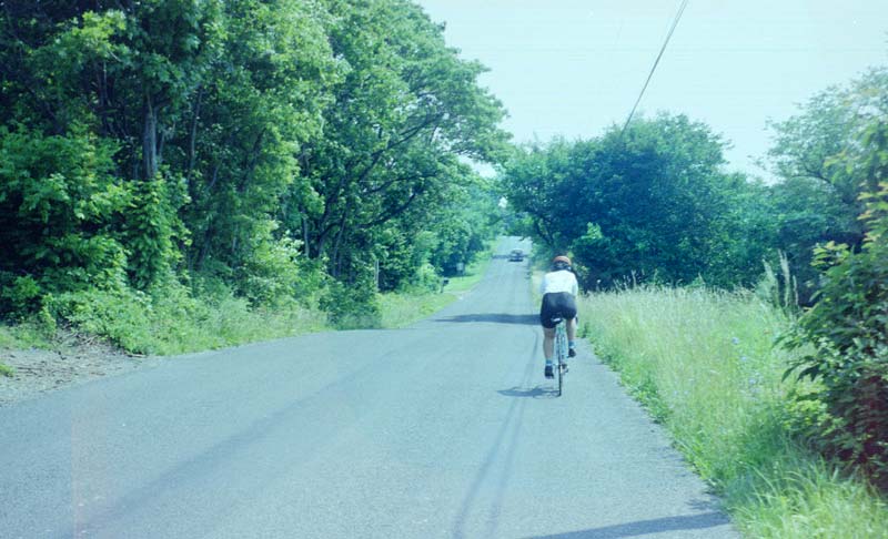 The Allentown Road has less traffic than the Bethlehem Road, but it is hillier, and I am tiring out from riding in the heat of the day. Several times, I have to walk up hills, and finally, I feel my energy is about gone. I notice at some time that my rear rack has been swaying more than normal, but I don't have the energy to look at it. Then I reach the stop marked on John's map and am suddenly lost. A quarter of mile later, I pull off the road to compare my two maps, and two cyclists appear. The first identifies himself as John Schubert, so I assume the second is Ann. However, the second is Wendy. They guide me to John's house as I am so drained that I am almost sick; I don't think I could find my way back again from memory.